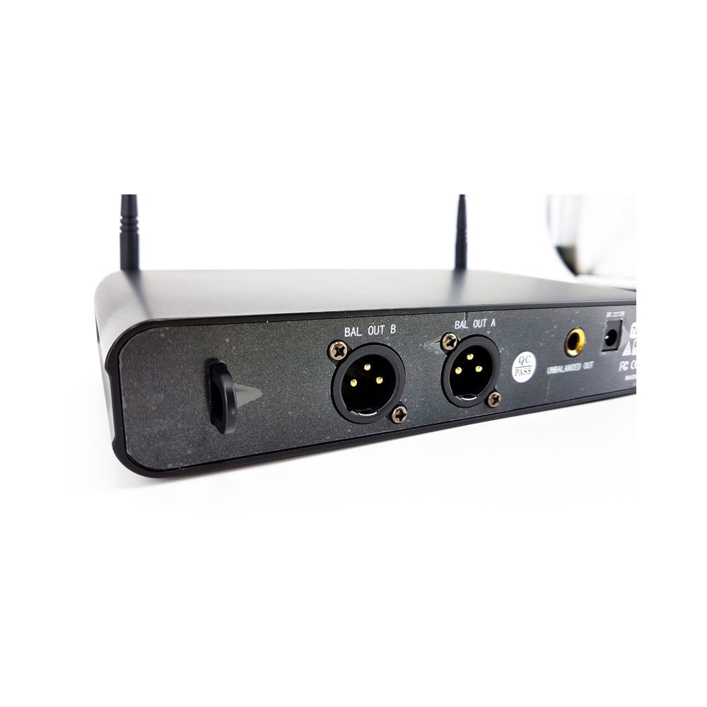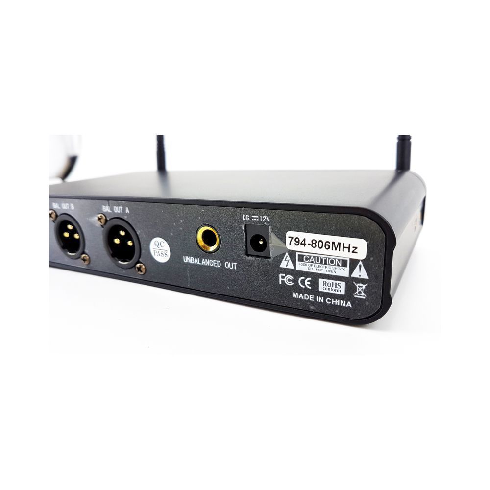 ХАРАКТЕРИСТИКИ ПРИЕМНИКА Передняя панель – Переключатель питания: при включении прибора светодиодный индикатор загорается синим цветом – Дисплей: на дисплее отображается рабочий канал – Инфракрасный порт: через этот порт происходит синхронизация – Кнопка SELLECT: выбор канала и запуск синхронизации – Регулятор громкости: настраивает уровень громкости – Антенна Задняя панель – Разъем для шнура питания (DC12V/1000mA): подключение блока питания – Небалансный разъем 6,35 мм (1/4"): подключение устройств типа микшера или усилителя – Балансный XLR разъем: подключение устройств типа микшера или усилителя ХАРАКТЕРИСТИКИ ПЕРЕДАТЧИКА Микрофон – Микрофонная головка: капсюль внутри – Металлическая рукоятка (сплав алюминия): анодированное покрытие, не подвергается коррозии – Инфракрасный порт: держите микрофон так, чтобы инфракрасное окно было направлено на порт в приемнике и находилось на расстоянии 5-20 см для запуска синхронизации. При использовании сразу нескольких систем только один передатчик сигнала через инфра