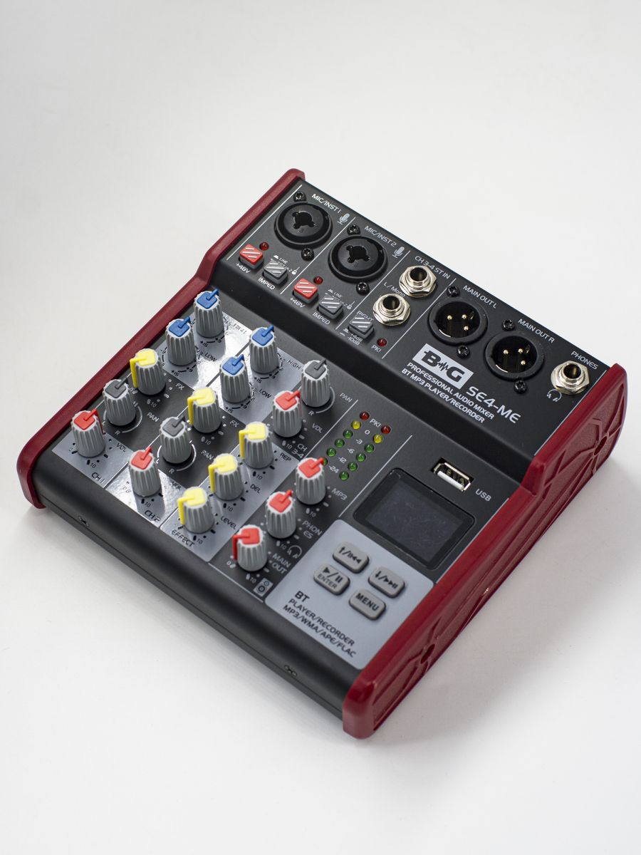 BG SE4-ME Пульт микшерный, 2 моно, 1 стерео, процессор эффектов, USB, MP3 плеер, BT, 2 полосный эквалайзер, фантомное питание