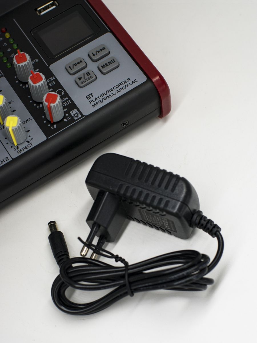 Описание модели: пульт микшерный аналоговый Количество каналов: 2 моно, 1 стерео Моно входы: XLR сбалансированный, 2 кОм, чувствительность: -60 + 14 дБ; TRS сбалансированный, 10 кОм, чувствительность: -64 + 14дБ; XLR, + 48 В Стерео входы: TRS сбалансированный, 10 кОм, чувствительность: -40 +14 дБ Подключение по USB: есть Максимальный уровень входного сигнала : MIC +22 дБ, Line +20 дБ, Other Line +16 дБ Максимальный выходной уровень: XLR +22 дБ, TRS +20 дБ Эквалайзеры моно каналов: HF: +/-15 дБ, 12 кГц, LF: +/-15 дБ, 80Гц Измерители каналов: 1 LED сигнальная индикация Фантомное питание: +48 В CMRR (MIC 1кГц): >75 дБ Коэффициент нелинейных искажений и шума: <0.01% (канал to mix out) Частотный диапазон: 20 Гц - 30 кГц, 0.5 дБ Помехи на 1 кГц: Knob shutoff > 85 дБ, Inter channel > 82 дБ Шумы: 22 Гц - 22 кГц; EIN-122 дБ, остаточный выходной шум - < -90 дБ, L/R naub NUX < - 82 дБ, Aux mix - < -82 дБ Выход L/R: XLR сбалансированный, pin 2 hot, <75 Ом, от +4 до +22 дБ Проигрыватель: 1.4 LCD-дисплей