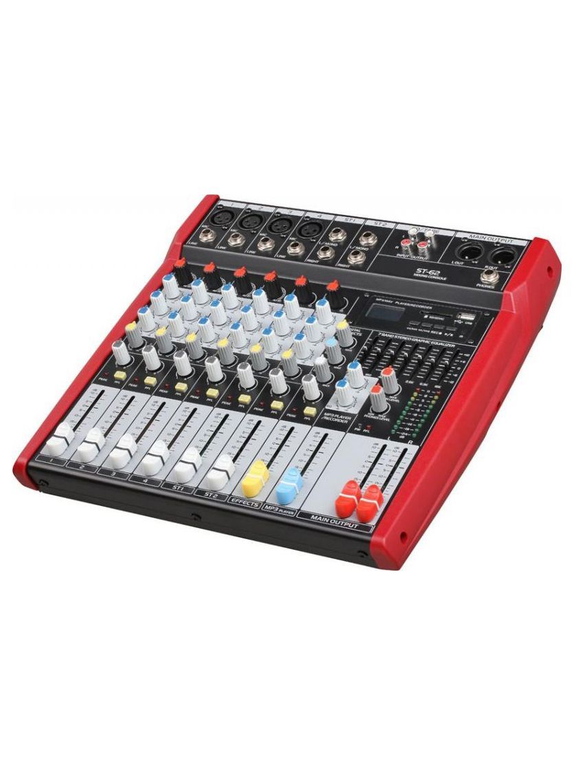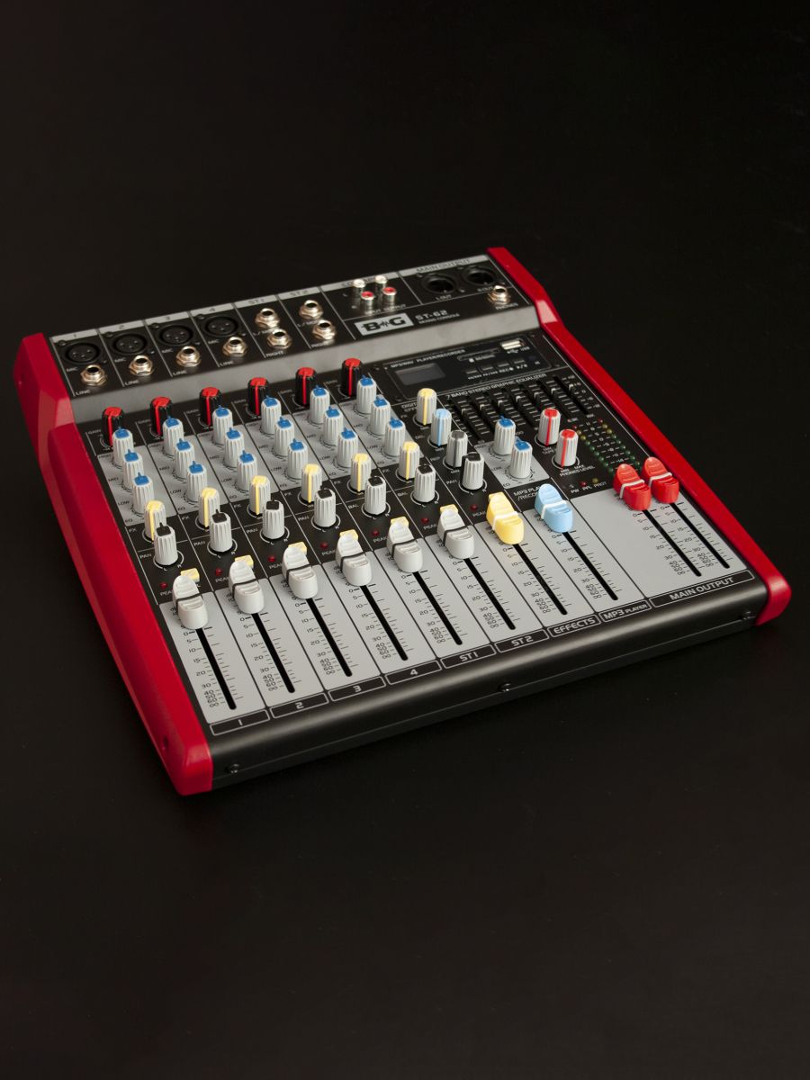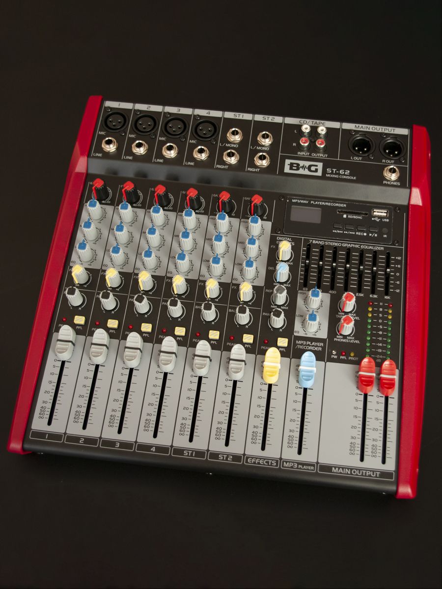 BG ST-62 Пульт микшерный, 4 моно, 2 стерео, USB/SD MP3 плеер, процессор эффектов, 7 полосный эквалайзер
