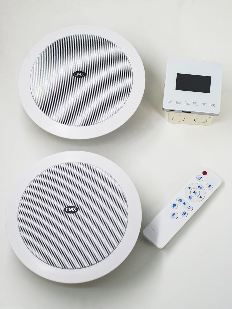 CMX Audio A5D Встраиваемый настенный усилитель 2х15Вт/8Ом, в комплекте два потолочных динамика 5" 15Вт, пульт управления. Сенсорная панель, USB/SD Mp3 плеер, FM тюнер, Wi-Fi интернет стрим, Bluetooth