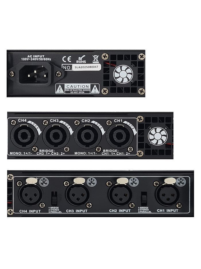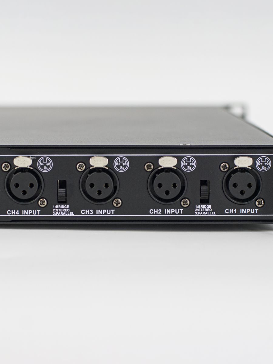 Класс: D Мощность RMS/Пик (4 Ом): 4х500 Вт Мощность RMS/Пик (8 Ом): 4х300 Вт Частотный диапазон, Гц: 20-20000 Соотношение сигнал/шум: >105 дБ Источник питания: AC 100~240 В, 50/60 Гц Размер (ШxВxГ): 484×375×45 мм Вес: 9.5 кг