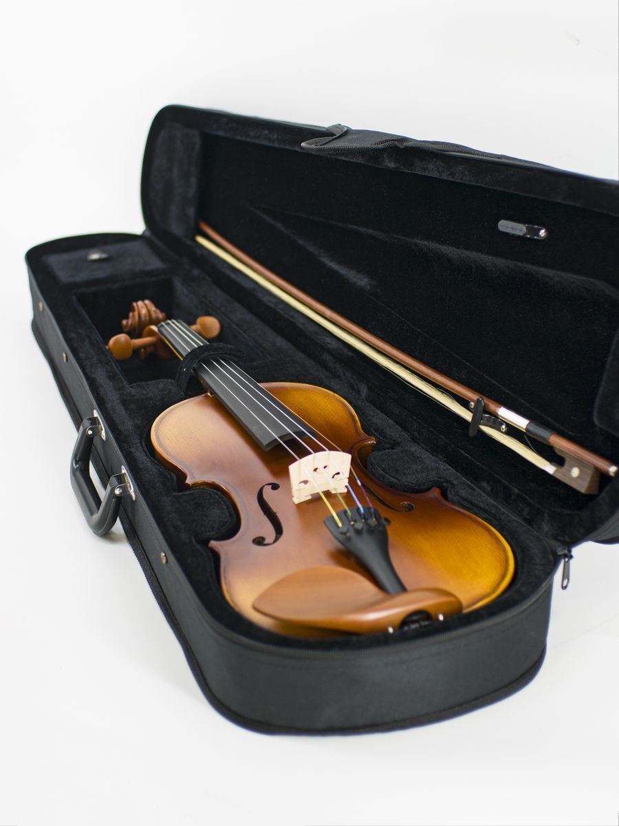 HMI HV-200HF 3/4 Скрипка Student 3/4, в кейсе, смычок, канифоль, верхняя дека - массив ели, нижняя дека, обечайки - массив клена, гриф - черное дерево, матовая