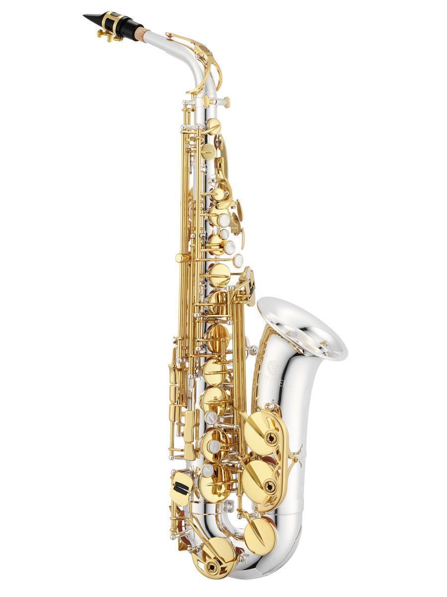 Jupiter JAS1100SGQ Саксофон альт Eb, посеребренная эска "Sona-Pure", клапан верхнего F#, регулируемый упор для большого пальца, посеребренный корпус, покрытие клапанов золотой лак, облегченный кейс JKC-AS55FU