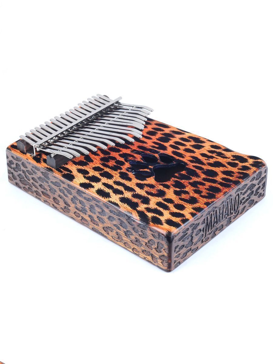 Mahalo MKA17CH Калимба 17 язычков, резонатор в виде деревянного короба, два звуковых отверстия на нижней деке, материал - трембези, в комплекте настроечный молоток, руководство пользователя, замшевый чехол для переноски, графический дизайн Cheetah