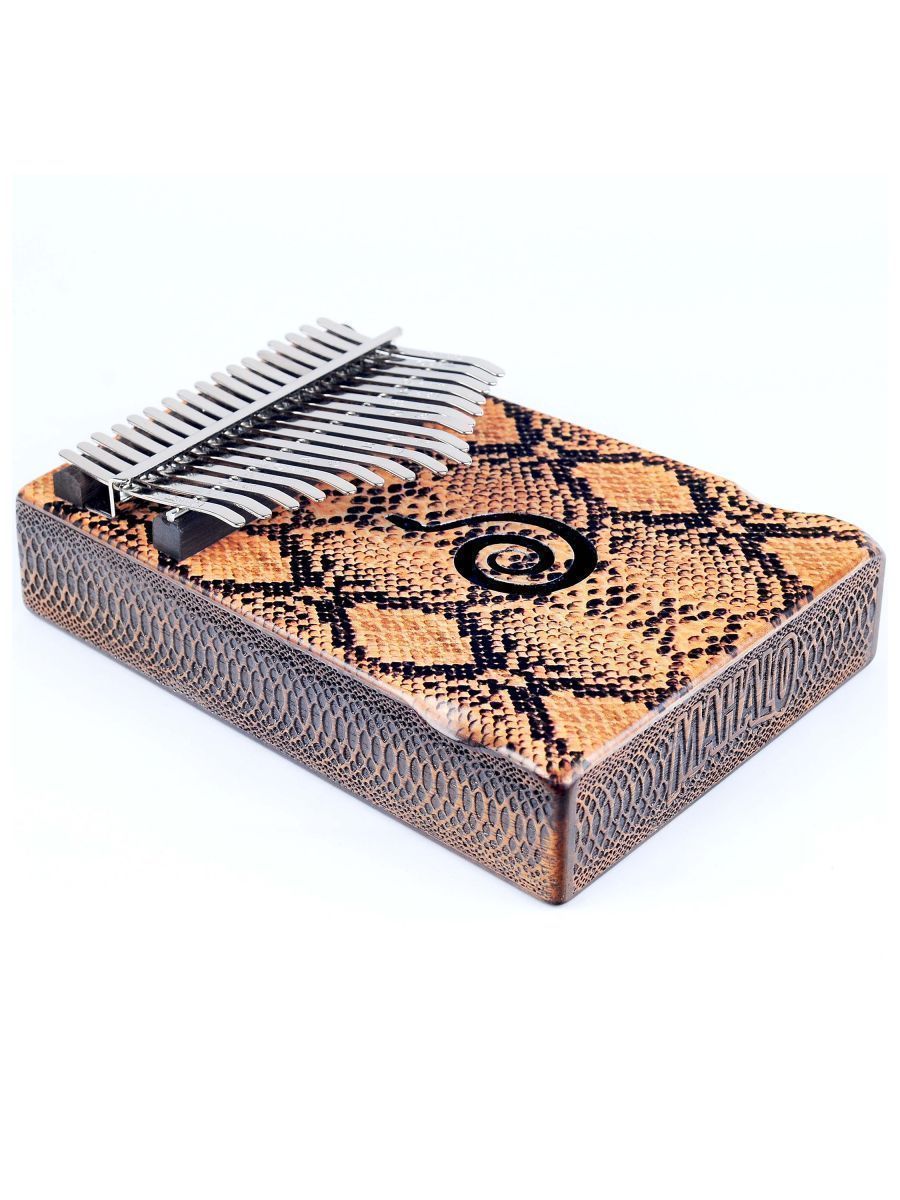 Mahalo MKA17PY Калимба 17 язычков, резонатор в виде деревянного короба, два звуковых отверстия на нижней деке, материал - трембези, в комплекте настроечный молоток, руководство пользователя, замшевый чехол для переноски, графический дизайн Python