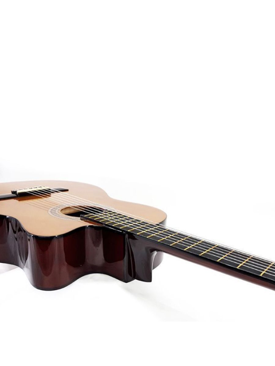 Valencia VC104C – это качественная полноразмерная классическая гитара с вырезом. Инструмент имеет универсальный характер звучания, поэтому подходит для различных музыкальных жанров и стилей игры. Корпус гитары изготовлен из липы, которая обладает усиленными резонансными особенностями. Гриф из нато имеет удобную форму и оптимальную ширину. Накладка выполнена из клена. Вырез эргономичной формы дает удобный доступ к верхним ладам. Натуральное покрытие Valencia VC104C положительно влияет не только на внешний вид инструмента, но и на его звуковые характеристики. Надежная колковая механика прекрасно держит строй и обеспечивает легкость при настройке. Нейлоновые струны, установленные на комфортной для игры высоте, придают звучанию особую мягкость. Стильная, удобная и доступная по цене гитара Valencia VC104C – идеальный вариант для начинающих музыкантов.