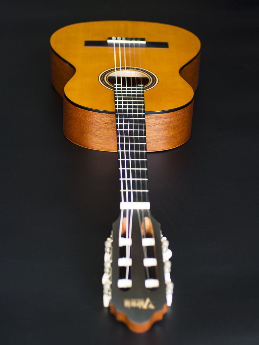 Valencia VC203HL Гитара классическая леворукая 3/4, верхняя дека: ель, нижняя дека и обечайка: нато, узкий 42 мм гриф: махагони, накладка грифа и нижний порожек: махагон, колки: винтажные, никель, цвет натуральный