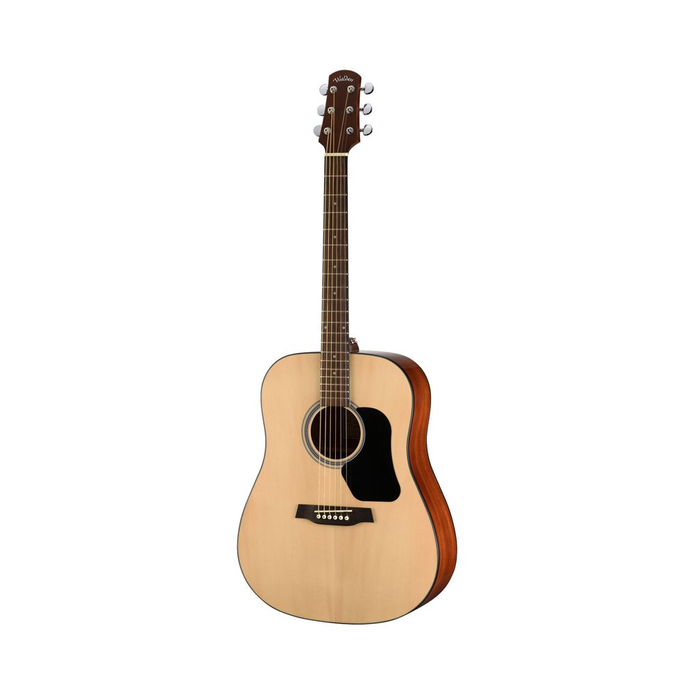 Walden D450W – это качественная акустическая гитара с массивным корпусом Dreadnought. Модель обладает мощным, громким и богатым звучанием. Верхняя дека инструмента выполнена из массива ели, материал нижней деки и обечайки – махагони. Зубчатая крестообразная распорка корпуса делает инструмент невероятно прочным и долговечным. Гриф из палисандра оснащен анкерным стержнем с двусторонним креплением. Армирование грифа стекловолокном обеспечивает исключительную стабильность и удобство игры. Накладка на гриф изготовлена из палисандра. Литые хромированные колки прекрасно держат строй. Гитара выполнена в натуральном цвете и покрыта лаком. Модель поставляется в комплекте с прочным чехлом. Акустическая гитара Walden D450W – это инструмент исключительного качества по доступной цене.